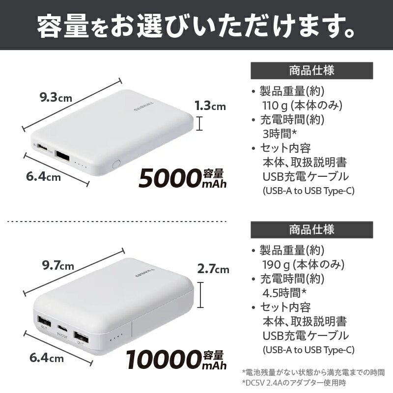 - 【ふるさと納税】 ツインバード モバイルバッテリー 選べる容量 5000mAh (AV-9105W) / 10000mAh (AV-9110W) 【 モバイル 充電器 充電ケーブル付 ホワイト 白 小型 コンパクト 手のひらサイズ 軽量 携帯 備え 防災 家電 電化製品 TWINBIRD 新潟県 燕市 燕三条 】 [10002856]