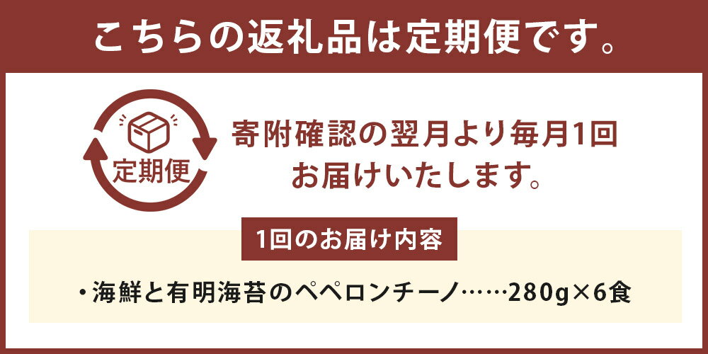- 【ふるさと納税】【選べる定期便】海鮮と有明海苔のペペロンチーノ 280g×6食 3ヶ月/6ヶ月/12ヶ月 定期便 ペペロンチーノ 海鮮パスタ 海鮮 レンジで温めるだけ 冷凍食品 冷凍パスタ お手軽 冷凍 送料無料