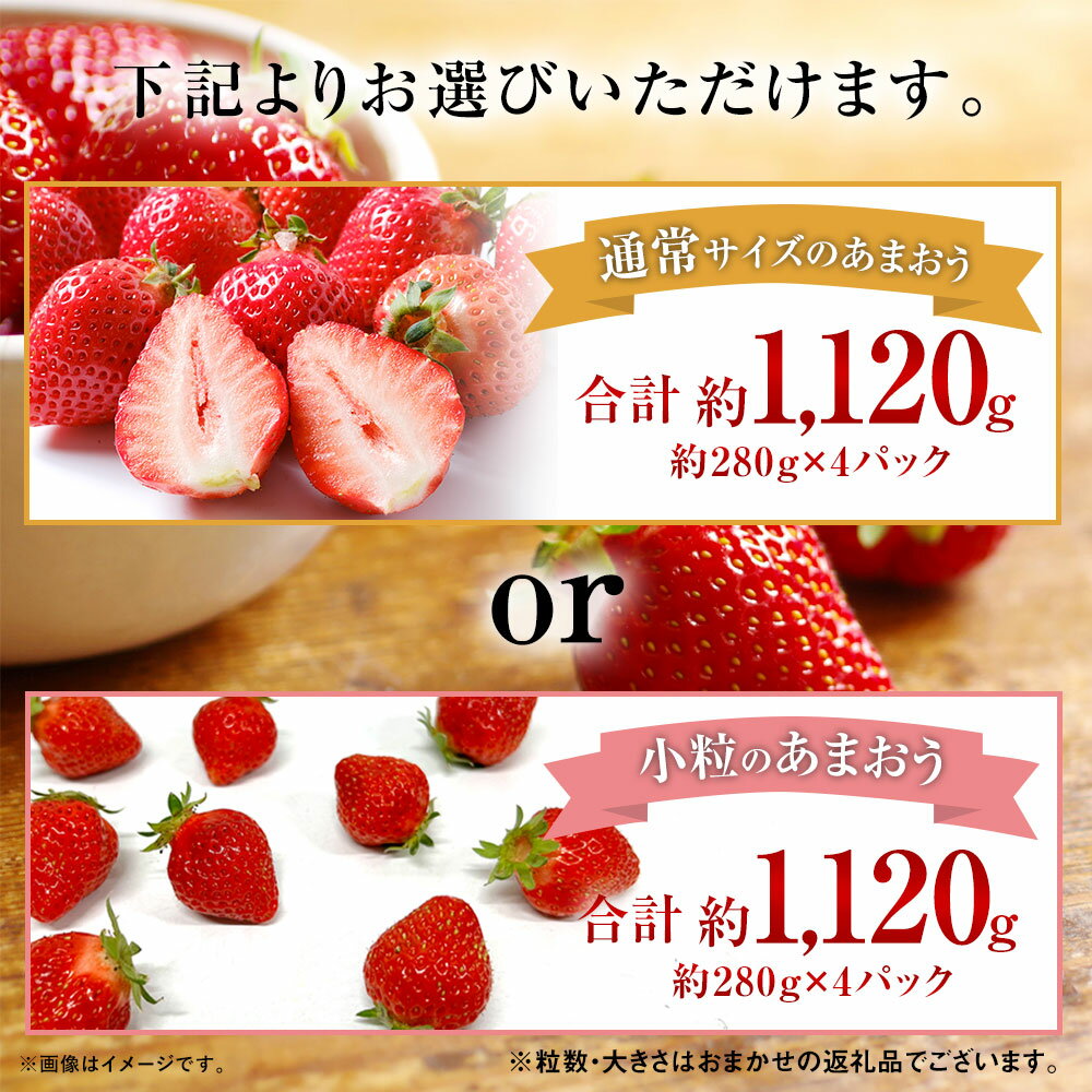 - 【ふるさと納税】<選べるサイズ> いちごの王様 あまおう 約280g×4パック 合計約1120g 通常 or 小粒 【2026年1月上旬~4月上旬発送予定】 いちご イチゴ 苺 粒数・大きさはおまかせ 朝採り フルーツ 果物 国産 冷蔵配送 送料無料