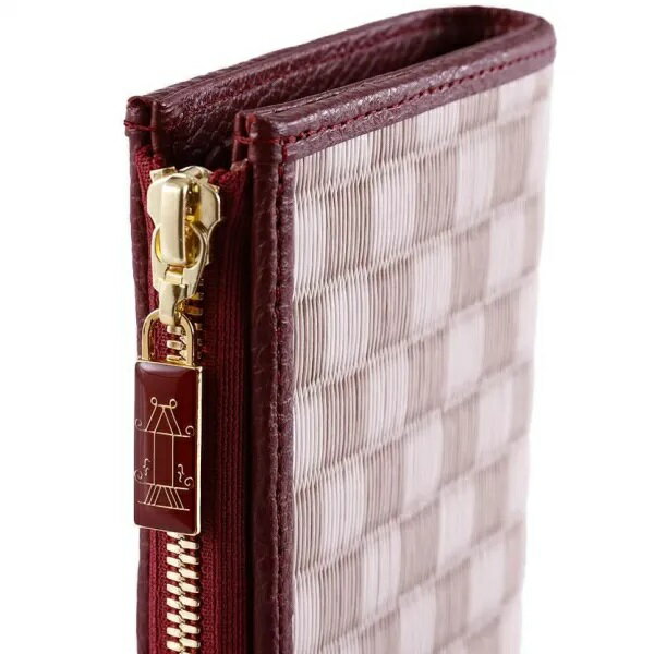 - 【ふるさと納税】L字ファスナー財布 吉野桜・赤 / 織田畳店 葵 Aoi ハンドメイド 二つ折り 財布 畳 セキスイ樹脂製表 本革 奈良県 田原本町