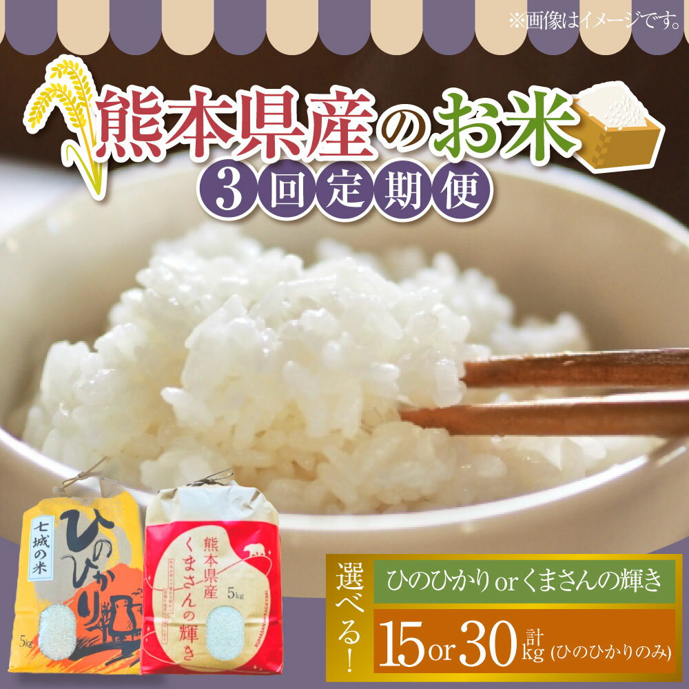 - 【ふるさと納税】<選べる内容量・品種>【年3回連続定期便】【令和7年度産】熊本県産のお米 計15kg(5kg×3回)・計30kg(計10kg(5kg×2個)×3回) ひのひかり くまさんの輝き 精米 お米 ごはん ご飯 国産 九州 熊本県 送料無料 【2025年11月上旬発送開始】