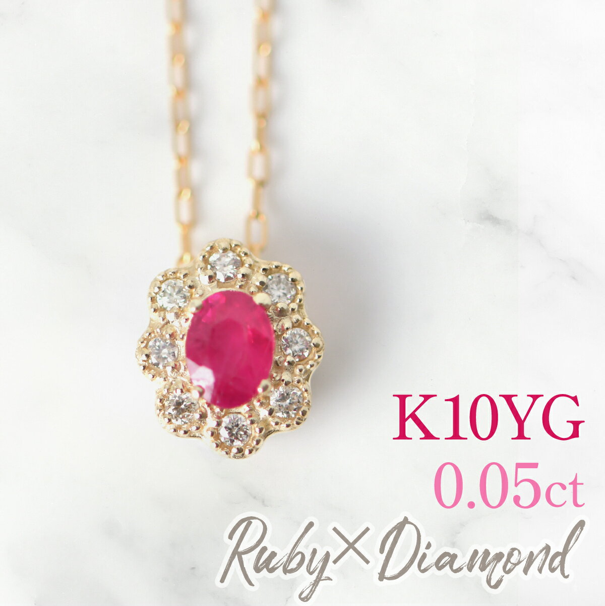 - 【ふるさと納税】K10 K18イエローゴールド ルビーダイヤ取り巻き ネックレス オーバル 選べる地金 ふるさと納税 人気 おすすめ ランキング アクセサリー リング 宝石 ジュエリー 高級 記念日 プレゼント 山梨県 笛吹市 送料無料 218-247-k10