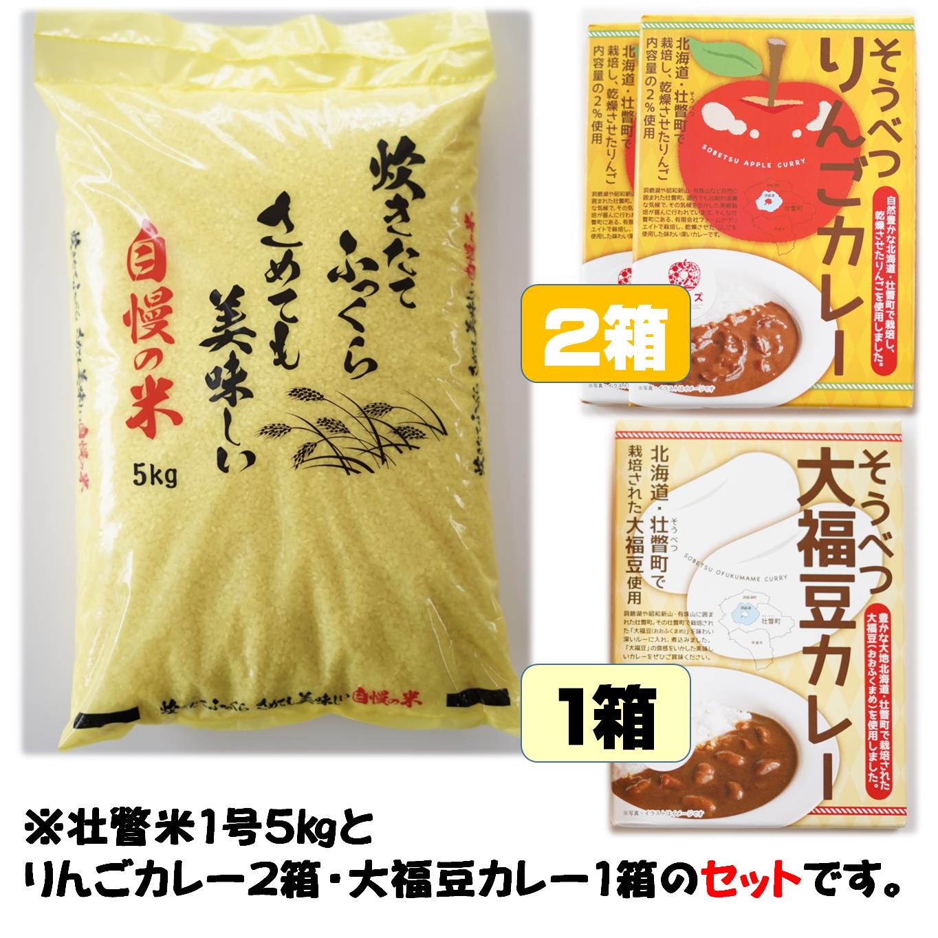 【ふるさと納税】北海道壮瞥産 お米とレトルトカレー2種(リンゴ2箱・大福豆1箱) 【 ふるさと納税 人気 おすすめ ランキング 北海道 壮瞥 米 レトルトカレー リンゴ 林檎 アップル 白米 大福豆 贈り物 贈物 贈答 ギフト 詰合せ セット 北海道 壮瞥町 送料無料 】 SBTA046