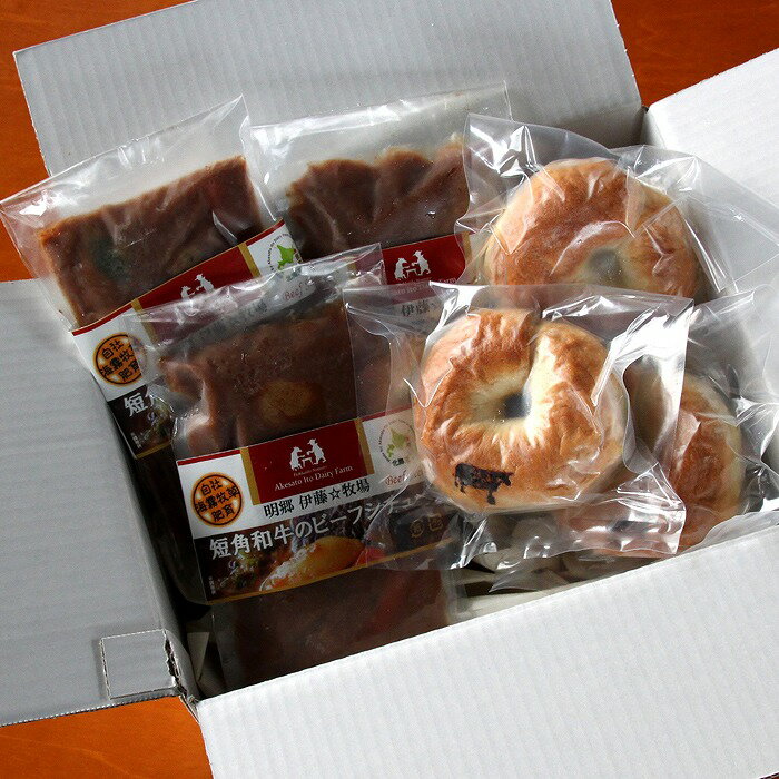 - 【ふるさと納税】【12月17日決済確定分まで年内配送】 短角和牛ビーフシチュー 3P、ベーグル 3 個セット 短角和牛 牛 牛肉 ビーフ ビーフシチュー シチュー ベーグル プレーン ハルヨコイ 小麦 お取り寄せ グルメ 北海道 根室市 ふるさと納税 A-13010