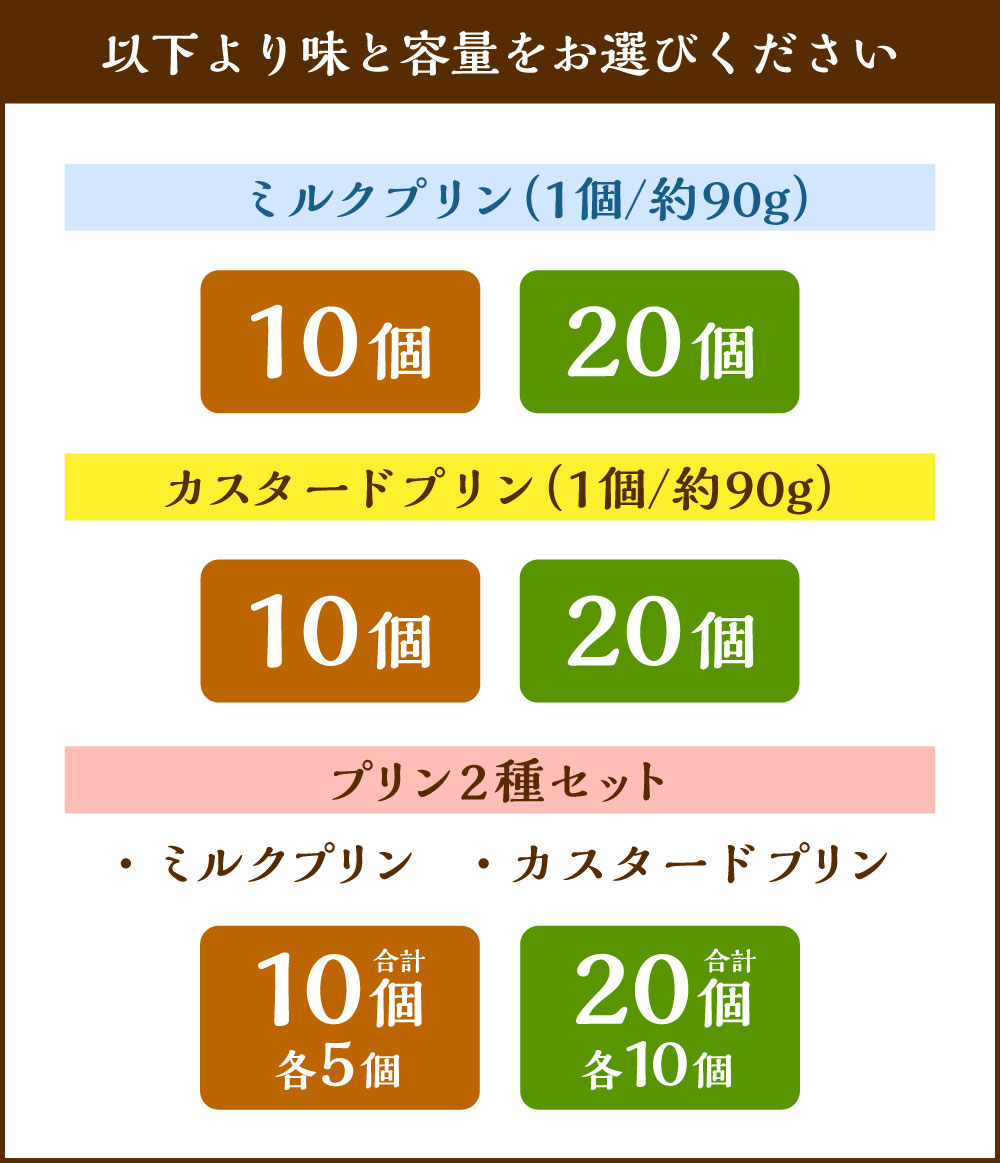 - 【ふるさと納税】<選べる味・容量>プリン ミルクプリン / カスタードプリン / 2種セット 計約900g(約90g×10個) / 計約1.8kg(約90g×20個) スイーツ デザート 洋菓子 お菓子 おやつ 牛乳 生クリーム 卵 冷凍 北海道産 国産 北海道 小樽市 送料無料