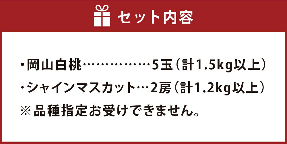 【ふるさと納税】桃 ぶどう 岡山白桃(5玉)とシャインマスカット(2房)詰合せ 合計2.7kg以上 白桃 桃 もも モモ 葡萄 ぶどう ブドウ フルーツ 果物 果実 くだもの 詰め合わせ セット 冷蔵 岡山県産 国産 岡山県 倉敷市 送料無料 【2026年7月上旬~8月上旬迄順次発送予定】