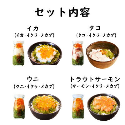 【ふるさと納税】海鮮丼の具 川秀瓶ドン4種類セット (ウニ 宮古トラウトサーモン イカ タコ) イクラ・メカブ入り!【配送不可地域:離島】【1681735】