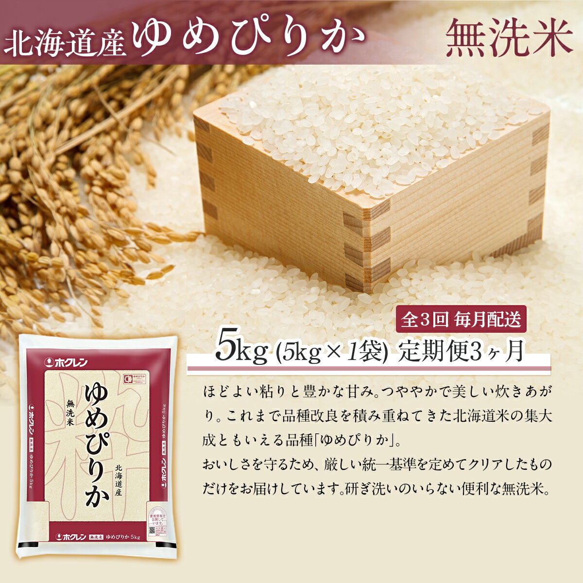 【ふるさと納税】【令和7年産】【3ヶ月定期配送】(無洗米5kg)ホクレンゆめぴりか 【 ふるさと納税 人気 おすすめ ランキング 米 コメ こめ お米 ゆめぴりか ご飯 白米 精米 無洗米 国産 ごはん 白飯 定期便 北海道 むかわ町 送料無料 】 MKWAI038