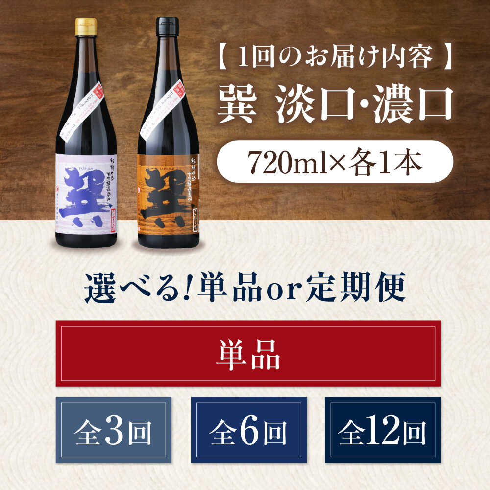 【ふるさと納税】醤油 【単品or選べる定期便】天然丸大豆醤油巽セット(淡口 濃口)720ml×各1計2本 こいくち うすくち 万能調味料 本醸造 天然醸造 丸大豆 和食 煮物 調味料 醤油 しょうゆ 食べ比べ 国産 料理 つけ醤油 かけ醤油 おすすめ 人気 大洲市/梶田商店[AGBB023]
