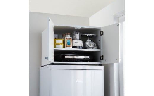 光沢仕上げ・冷蔵庫上ストッカー 幅57cm(脚部59cm)【ホワイト】_1300400842_01