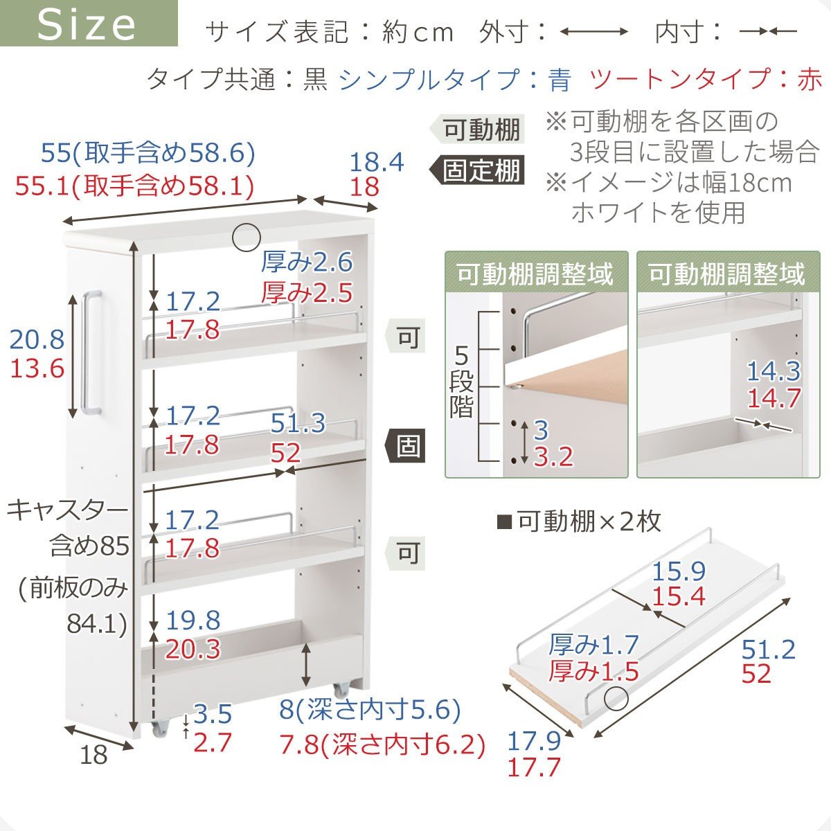 - 【国産家具】すき間ワゴンラック ロータイプ〔幅18cm・シンプルタイプ〕(選べる4色)隙間収納 キッチンラック スリム スリムラック キッチン キッチンワゴン 収納 すき間収納 ランドリー ラック 薄 KRA945188