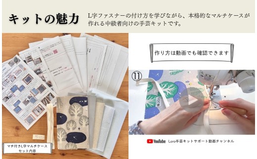- マチ付きL字マルチケース手芸キット【生地 北欧森グリーン×ブルーグレー】| 手芸キット 中級者 マルチケース ポーチ ハンドメイド 北欧風 手芸用品 手づくり 長野県 千曲市