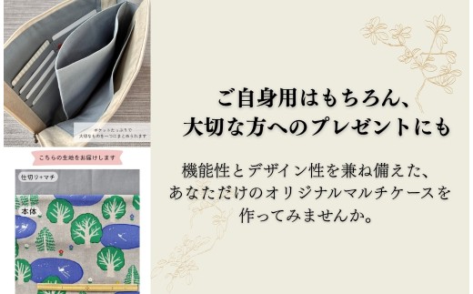 マチ付きL字マルチケース手芸キット【生地 北欧森グリーン×ブルーグレー】| 手芸キット 中級者 マルチケース ポーチ ハンドメイド 北欧風 手芸用品 手づくり 長野県 千曲市