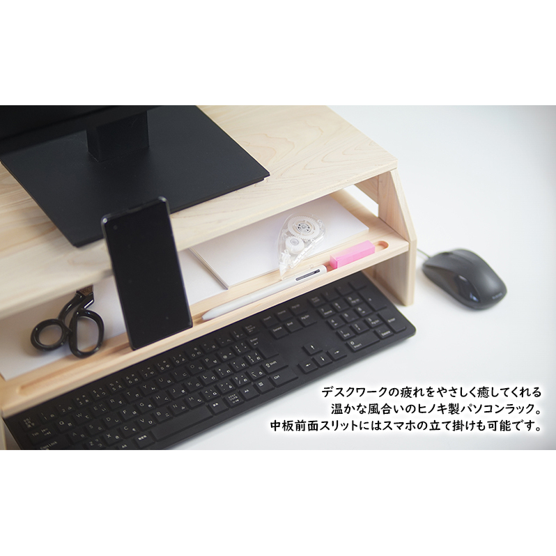 【ひのきパソコン台】 桧 無垢材仕上げ モニタースタンド 机上檜スタンドラック