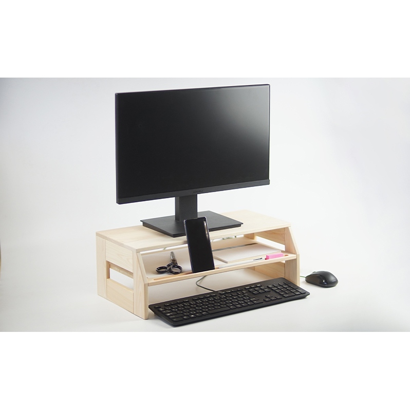 - 【ひのきパソコン台】 桧 無垢材仕上げ モニタースタンド 机上檜スタンドラック