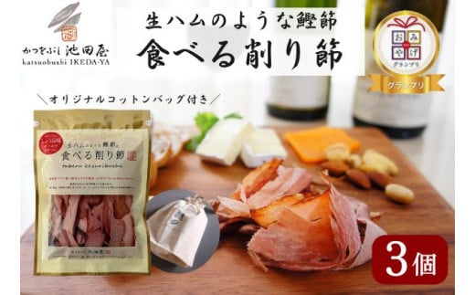 [№5720-0201]生ハムのような鰹節食べる削り節3個 オリジナルコットンバッグ(M)入り