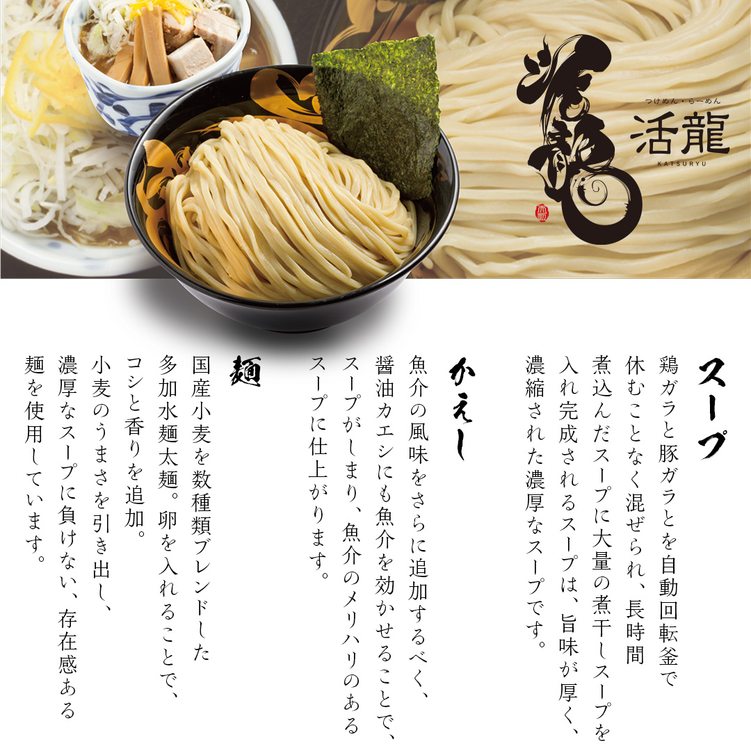 活龍 つけ麺 250g × 6食 セット ( チャーシュー 、 メンマ 入り) ラーメン つけめん 濃厚 魚介 豚骨 太麺 茨城県 冷凍 麺 具付き 食品 名店 人気 [BL002sa]