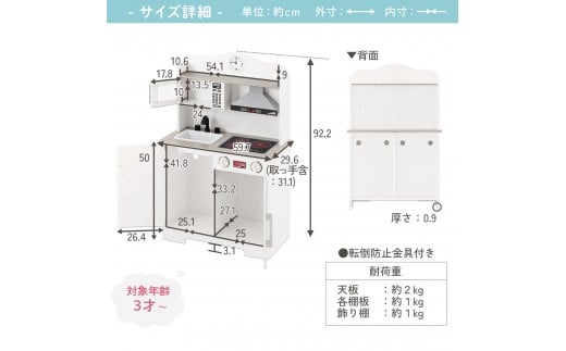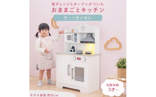 - 【完成品+設置付き】おままごとキッチン 電子レンジ・オーブン付き(ホワイト)おままごと キッチン コンパクト 約 幅60 奥行31 高さ92 おままごとキッチン シンプル おもちゃキッチン 光る 音が鳴る 木製 EKONTC001710-0-WH