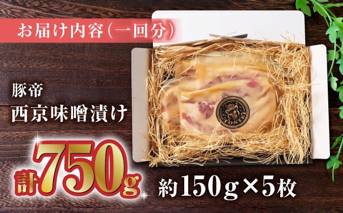 - 【6回定期便】豚帝 西京味噌漬け ギフトセット 750g(150g×5枚)【KRAZY MEAT(小田畜産)】 豚肉 豚 バラ ロース 自家製 国産 熊本県 味付き [ZCP062]
