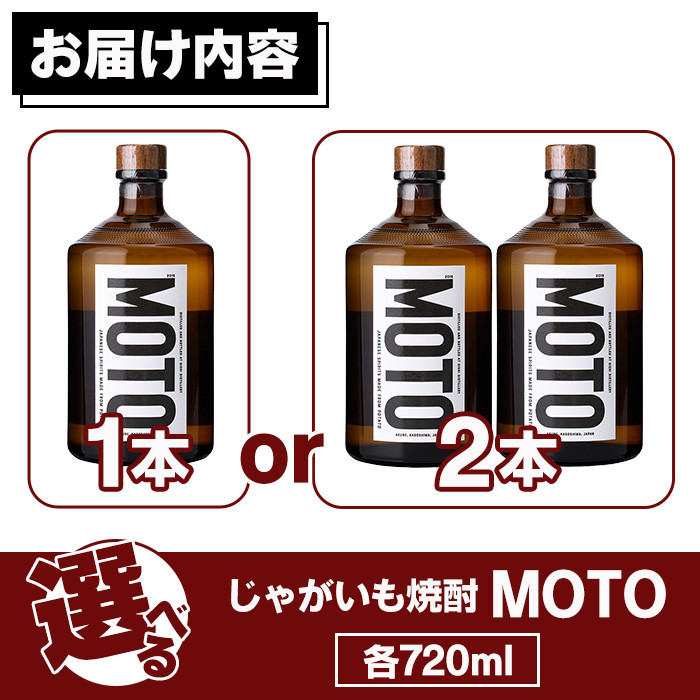 - <本数が選べる!>数量限定!じゃがいも焼酎「MOTO」(720ml×1本or2本)国産 じゃがいも ジャガイモ 酒 飲料 蒸留酒 アルコール【細原意匠研究室】