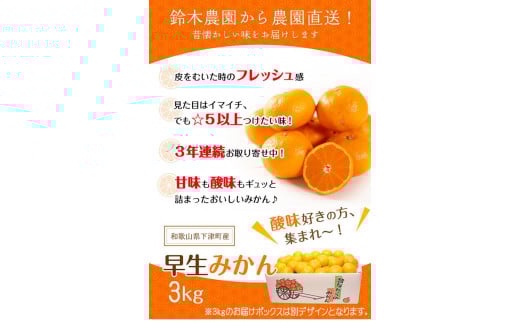 みかん 早生みかん 3kg S/M/Lサイズ 農園直送 鈴木農園【11~1月発送】みかん ミカン 蜜柑 mikan 和歌山みかん 下津みかん しもつみかん 温州みかん 柑橘 フルーツ 果物