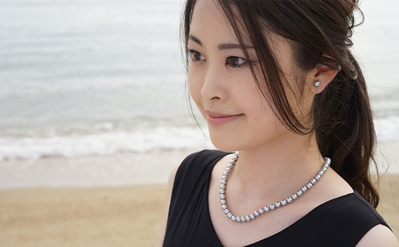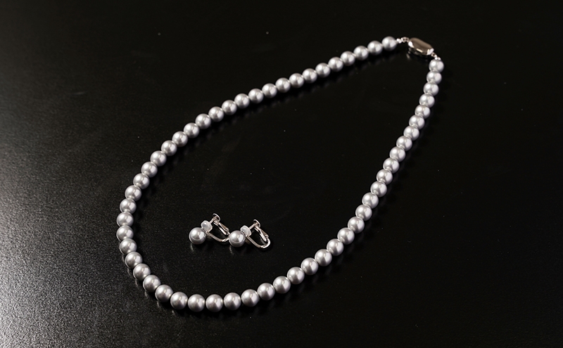 島珠 ネックレス・イヤリングセット 7mm グレー 兵庫県 洲本市 淡路島 [№5395-0351]