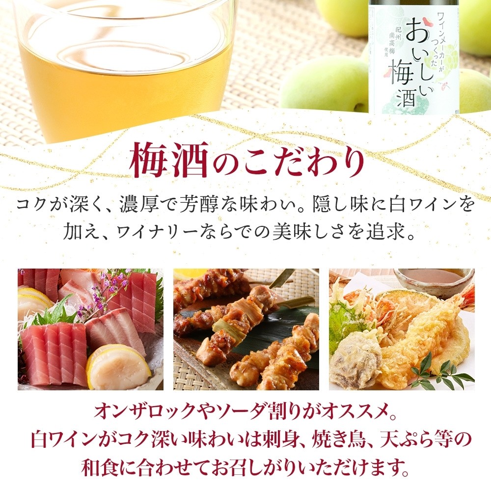 KG1014_ おいしい梅酒 12度 500ml × 2本 湯浅ワイナリー 肉厚 紀州南高梅 使用 隠し味 白ワイン 常温 そのまま オンザロック ソーダ割り 和食に合う お酒 酒 リキュール 果実酒 お取り寄せ 和歌山県 湯浅町 送料無料