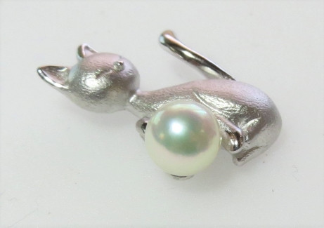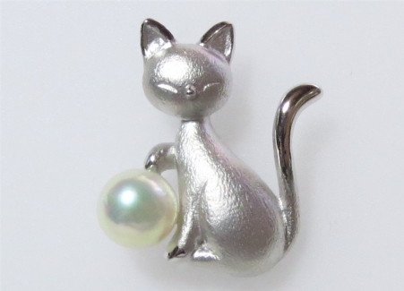 真珠の里 猫のタックブローチ シルバー製 / 伊勢 志摩 伊勢志摩 英虞湾 志摩産 真珠 パール アコヤ貝 アクセサリー ブローチ ギフト プレゼント ビジネス 冠婚葬祭 慶事 弔事 結婚式 入学式 卒業式 国産 誕生石 記念日 母の日 誕生日 クリスマス ホワイトデー
