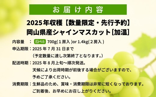 【2025年先行予約】[加温]岡山県産シャインマスカット 700g/1.4kg