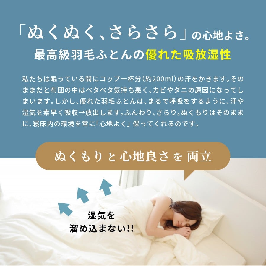 香川県高松市で製造 羽毛合掛け布団DL ダウン85% ダブルロング 190x210サイズ