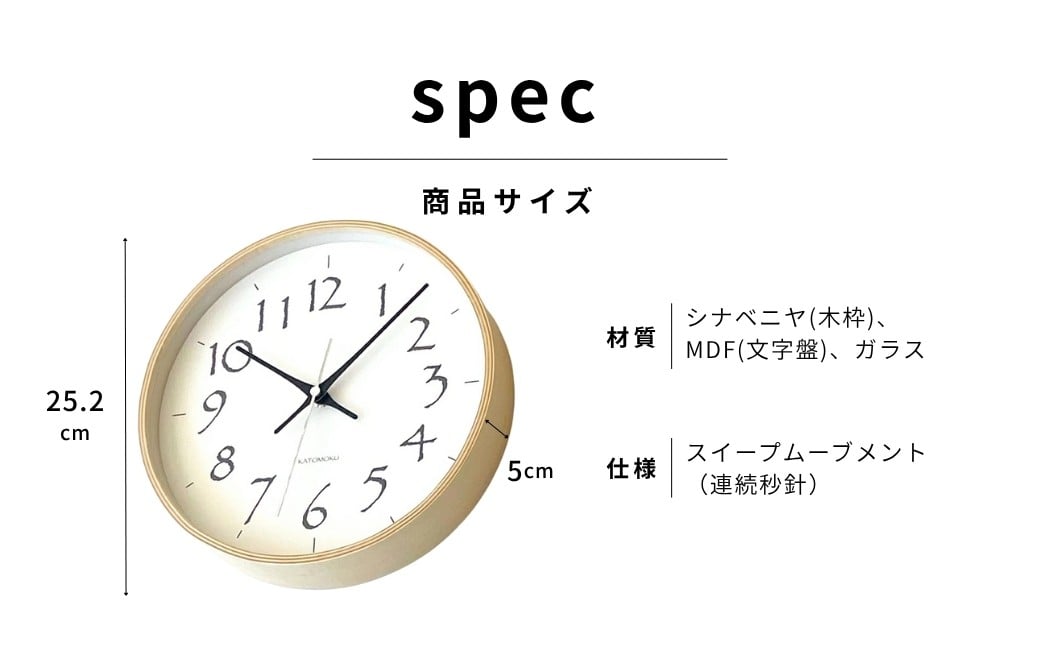 - 【A-187】KATOMOKU Plywood clock km-119 木製掛け時計 インテリア 寝具 収納 置き時計 掛け時計 掛け時計