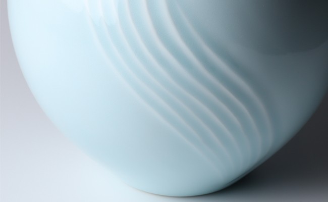 佳秀窯 有田焼 青磁彫花瓶 A650-11