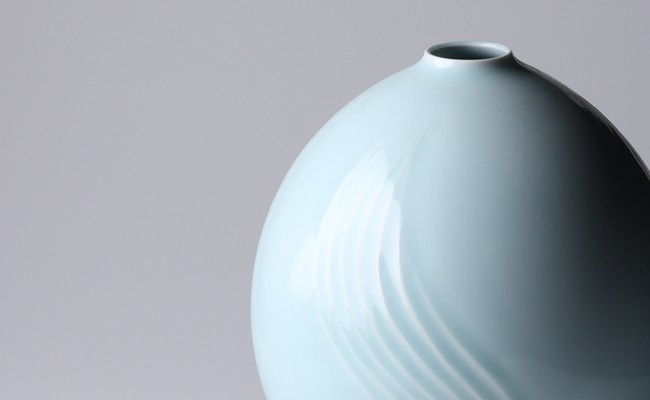 - 佳秀窯 有田焼 青磁彫花瓶 A650-11