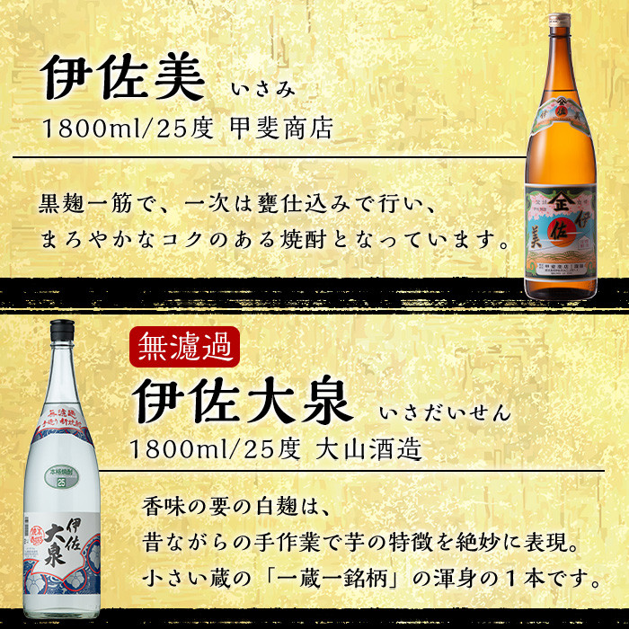 【ふるさと納税】どんと6本!伊佐の味セット!伊佐美、黒伊佐錦、白伊佐錦、伊佐大泉、伊佐舞(各1.8L・伊佐美×2本ほか各1本・計6本) 鹿児島 本格焼酎 芋焼酎 一升瓶 お酒 芋 米麹 常温【平酒店】
