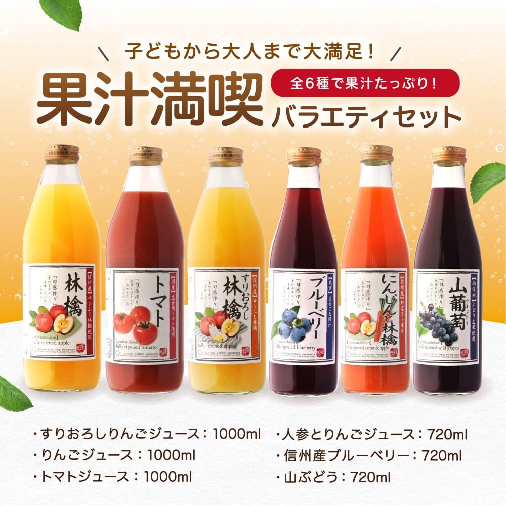 - 果汁 満喫 バラエティー ジュース 6本 セット | 小池手造り農産加工所 りんご トマト 人参 ブルーベリー 山ぶどう ジュース 国産 手造り てづくり 健康 飲料 長野県 飯田市