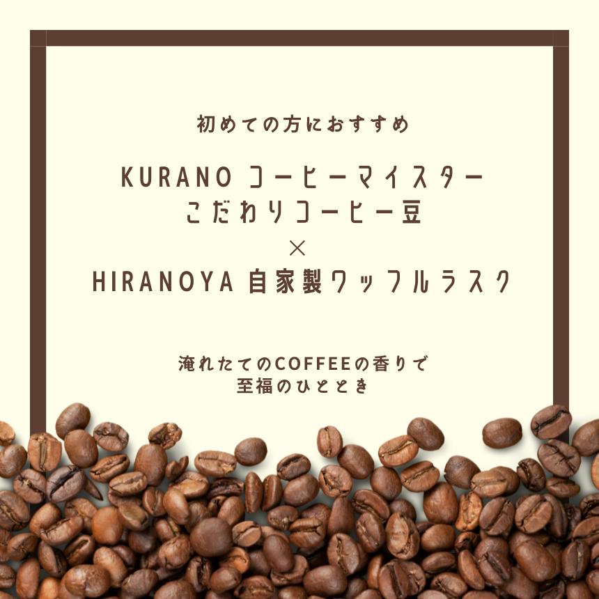 KURANO coffee 自家焙煎 コーヒー マイスター こだわり コーヒー 200g×3種 と ワッフル ラスク 2袋【選べるセット】 | コーヒー 豆 粉 焙煎 ワッフルラスク ご褒美 ギフト 贈り物 飲料 お菓子 長野県 飯田市