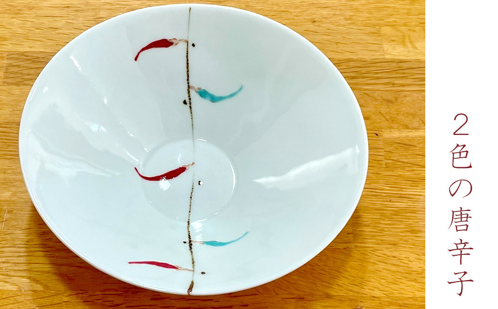 有田焼 一峰窯 ひらなり鉢【中】(唐辛子絵)