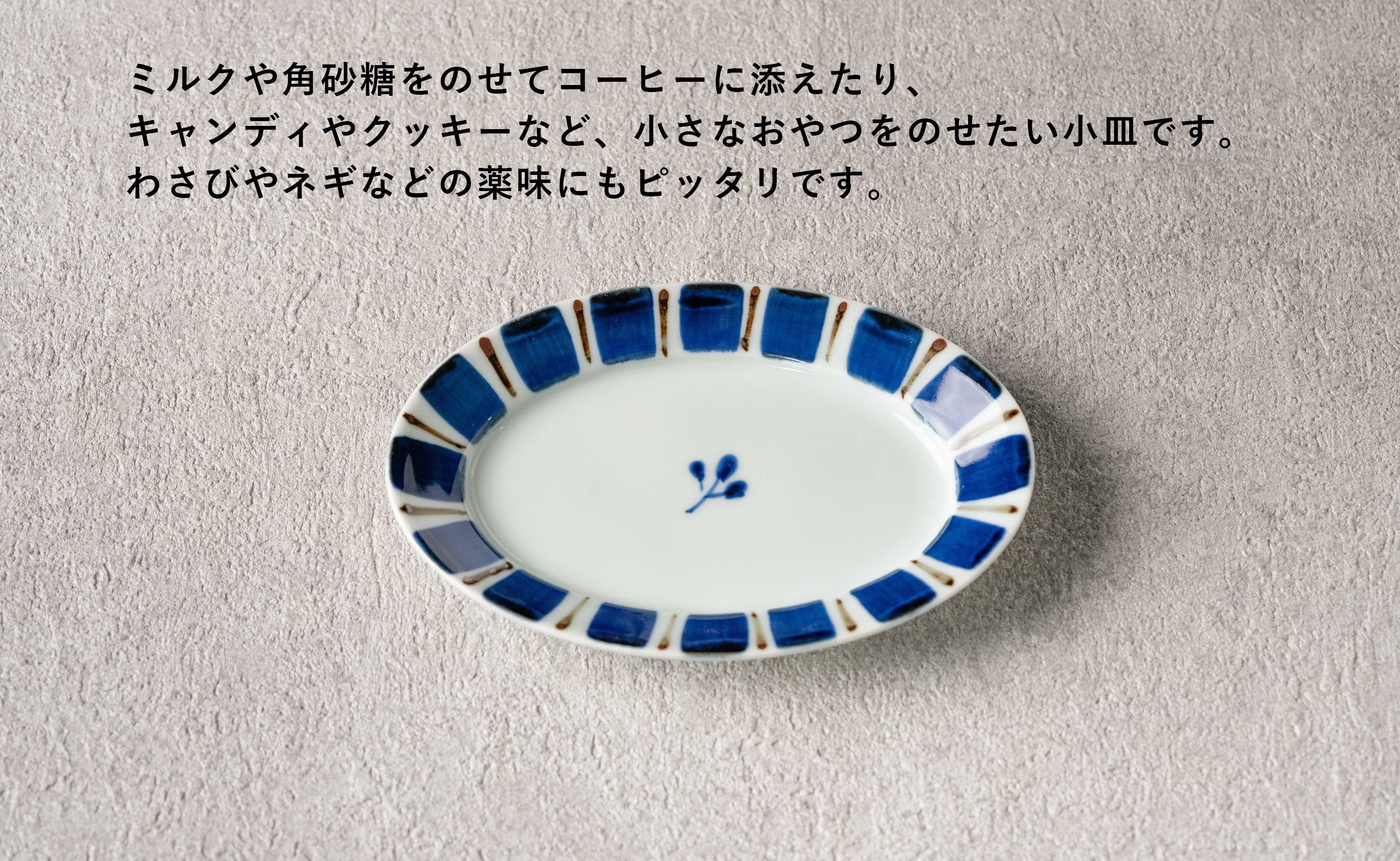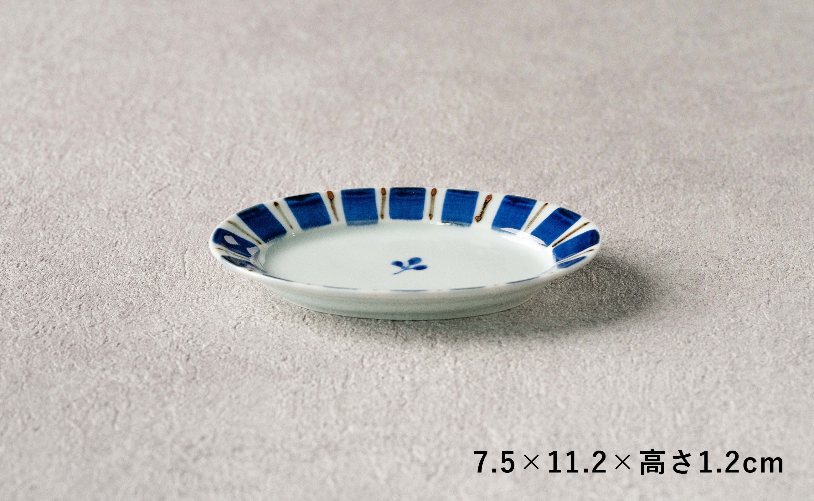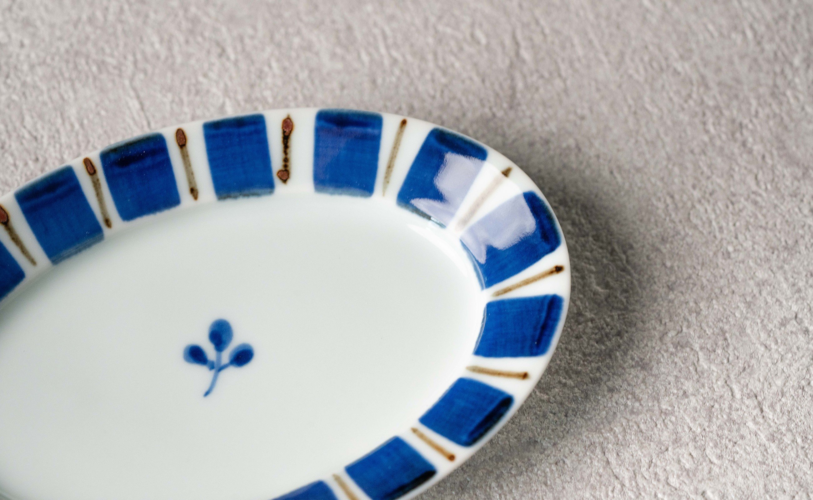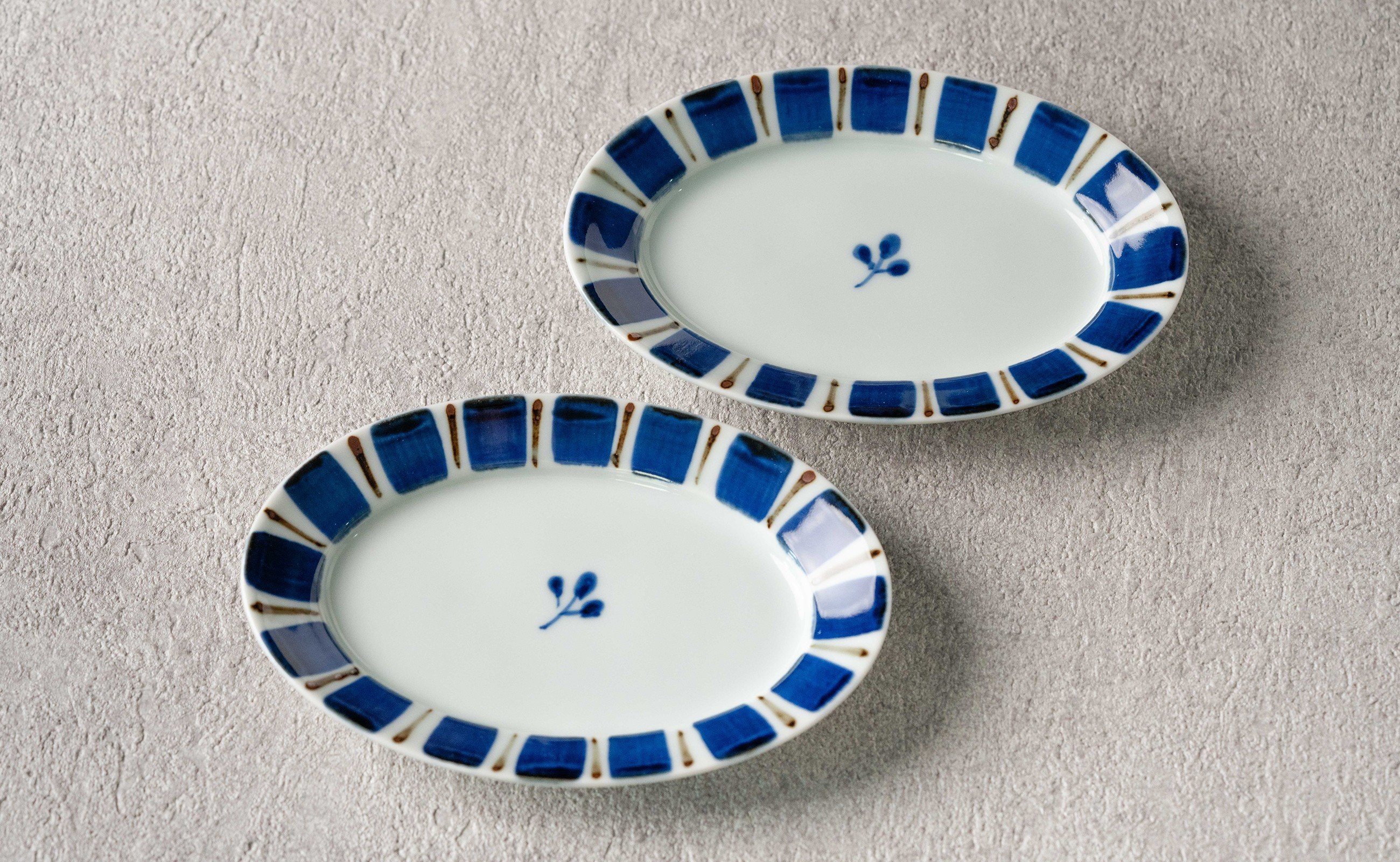 - 【カネアオ】有田焼 11cm リム楕円皿 (小) 2枚 呉須錆十草 皓洋窯