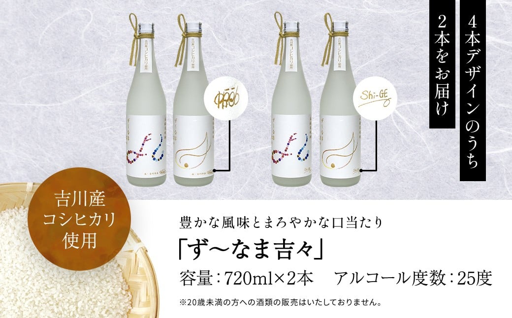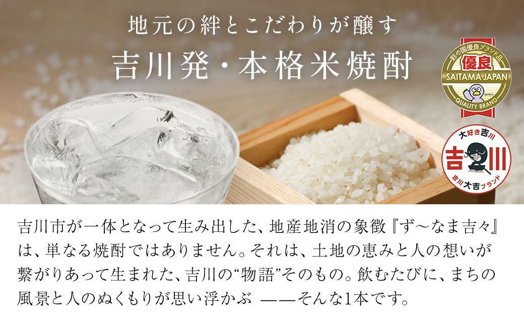 - 本格米焼酎 ず~なま吉々 720ml×2本 / 米焼酎 焼酎 しょうちゅう お酒 酒 晩酌 吉川産 黒麹 焼酎セット ギフト 還暦祝い 父の日 母の日 敬老の日 プレゼント お祝い 祝い お中元 御中元 お歳暮 御歳暮 ふるさと納税焼酎 米 お土産 本格焼酎 特産品 家飲み 特産 埼玉県 吉川市 / 014-002