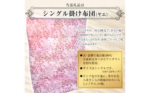 - ふとん 布団 掛け布団 シングル 「まるごとジャパン」認定 荒尾産高級羽毛掛けふとん(二層式)【柄名:ヤエ】〈シングルタイプ〉《60日以内に出荷予定(土日祝除く)》 ダルマックス