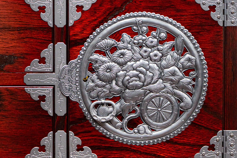 - 仙台箪笥 中型車箪笥 拭き漆塗り 【扉:彫金手打金具】(源氏花車)(お申込書返送後8ヶ月~12ヶ月程度でお届け)工芸品 伝統|06_kyk-850301