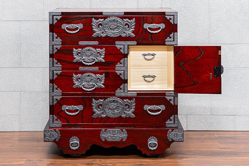 仙台箪笥 中型車箪笥 拭き漆塗り 【扉:彫金手打金具】(源氏花車)(お申込書返送後8ヶ月~12ヶ月程度でお届け)工芸品 伝統|06_kyk-850301