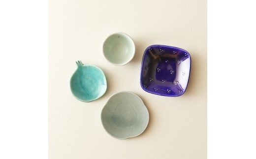 - テシオ 豆皿セット 4枚組(柘榴・緑)【 豆皿セット 皿 醤油皿 味見皿 小皿 食器 キッチン 磁器 星柄 ザクロ】
