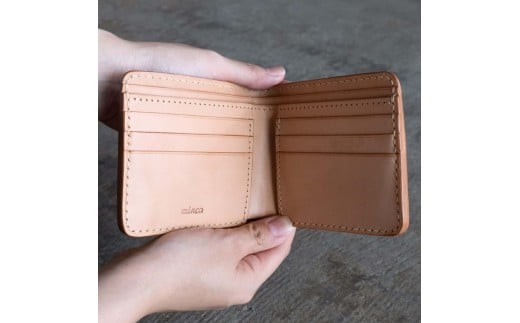 - 栃木レザー使用|やわらか本革二つ折り財布|Half wallet 02|キャメル|minca(全7色)
