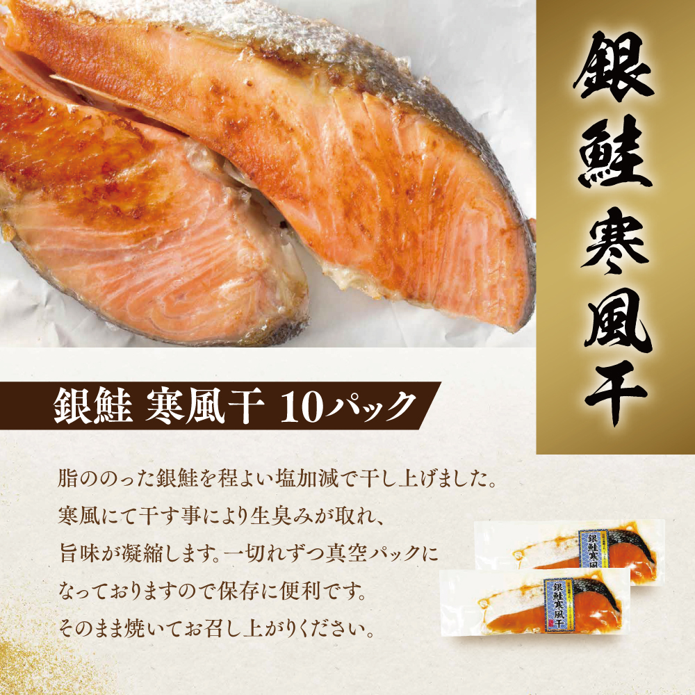 銀鮭寒風干し10切れセット 鮭 銀鮭 銀シャケ さけ サケ しゃけ シャケ サーモン 塩鮭 切り身 干物 ひもの 魚 海産物 魚介 魚介類 惣菜 おかず ごはんのお供 朝ごはん お弁当 個包装 真空パック 冷凍 新潟