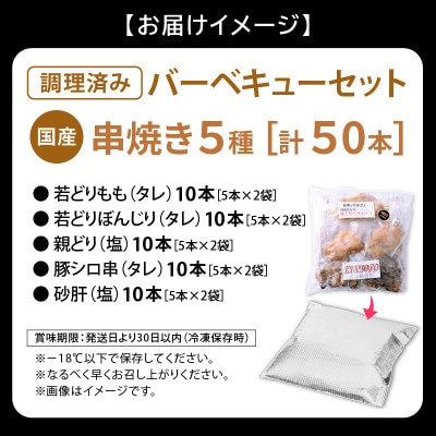- 国産 焼き鳥 5種セット 計50本(5本 × 10袋)【配送不可地域:離島】【1465945】