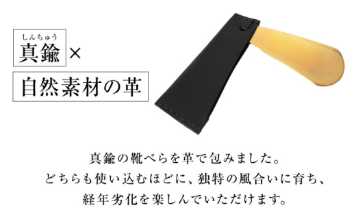 - 手縫い靴べらケース「革×真鍮」 ブラック 靴ベラ 靴べら くつべら ケース 携帯 靴べら ケース 革 真鍮 持ち運び コンパクト ミニ ミニギフト プレゼント 大阪府高槻市/KAKURA [AOBI033]本革 牛革 レザー 上質 高級感 シンプル おしゃれ 耐久性 耐摩耗 ビジネス用 メンズ レディース ギフト 贈答用 プレゼント コンパクト ポケット収納 収納便利 革小物 クラシック 人気