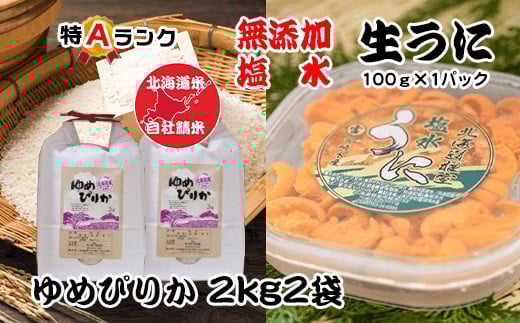 F-65011【11/30まで年内配送】 エゾバフンウニ塩水パック100g、ゆめぴりか2kg×2袋