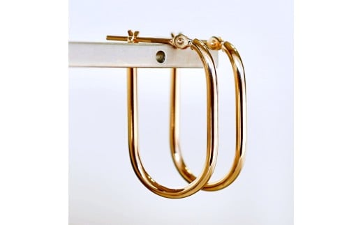 - 【ジュエリー】K10イエローゴールド 地金 おしゃれ オーバル フープ ピアス 保証書付 SKR-2121 242-014