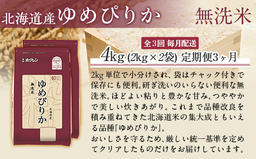 【令和7年産】【3ヶ月定期配送】(無洗米4kg)ホクレンゆめぴりか(無洗米2kg×2袋) 【ふるさと納税 人気 おすすめ ランキング 米 コメ こめ お米 ゆめぴりか ご飯 白米 精米 無洗米 国産 ごはん 白飯 定期便 北海道 むかわ町 送料無料】 MKWAI034